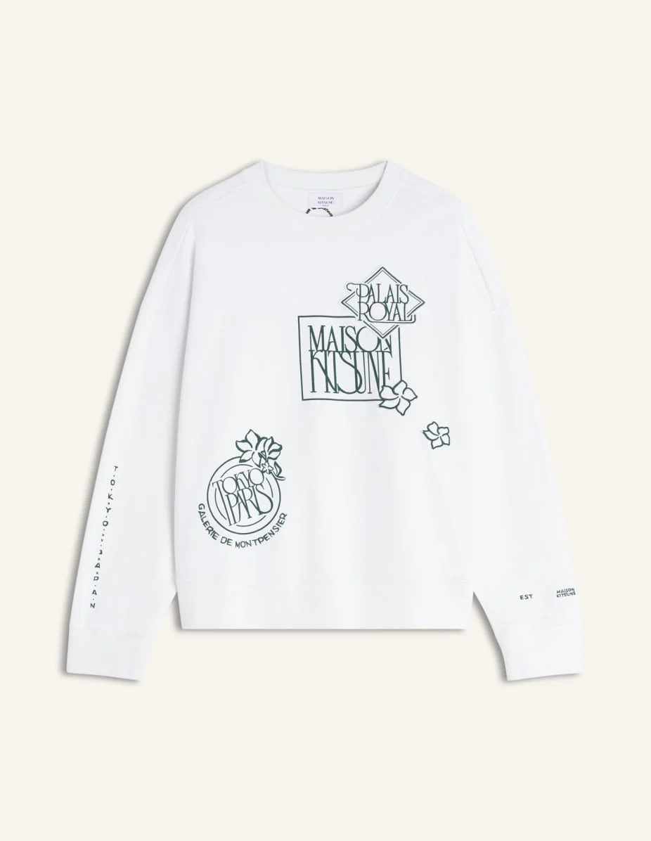 DETAILS Oversize sweatshirt in cotton fleece. Art Nouveau Stamps embroidered and printed on the front and back. - Sweatshirt in classic cotton fleece (430g) - Oversize fit - Crew neck - Art Nouveau Stamps embroidered patches and prints on the front and back - Ribbing at the neckline, cuffs, and bottom QM00303KM0340-P100 SIZE & CUT Cut: OVERSIZE Sizing: MEN The male model is 6 tall and wears a size S MATERIAL Main Material: 100% ORGANIC COTTON, RIB: 2% ELASTANE, 98% ORGANIC COTTON TRACEABILITY Made in Portugal