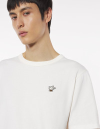 DETAILS Cafe Kitsune collection short sleeve cotton tee-shirt. Relaxed cut with embroidered Barista Fox patch. - Plain cotton t-shirt - Relaxed fit - Rib-knit trim crewneck - Barista Fox patch embroidered on the chest - Short sleeves - Reinforced seams at the sleeves and waist - Cafe Kitsune collection CKNU00102KJ7014-P709 SIZE & CUT Cut: RELAXED Sizing: UNISEX The male model is 11 and is wearing size M MATERIAL 100% COTTON TRACEABILITY Made in Portugal