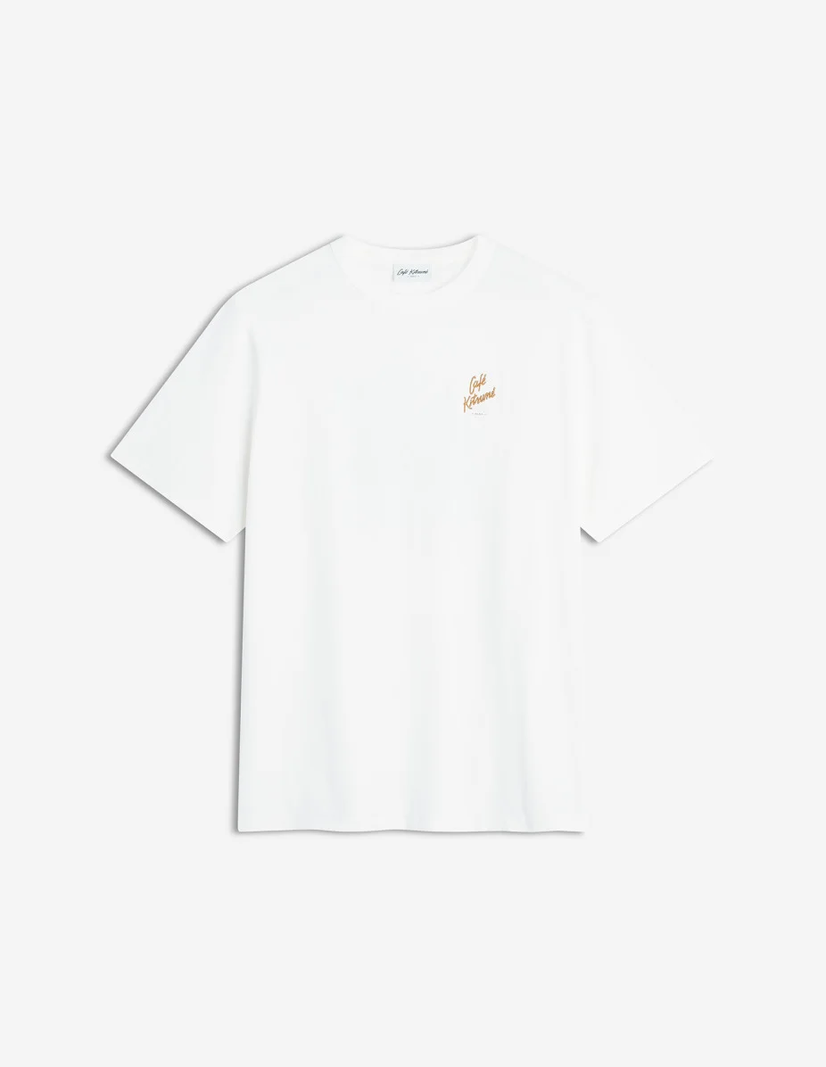 DETAILS Urban Nomadism short-sleeved T-shirt in soft jersey. Relaxed fit with Biking Barista Fox print. - Soft cotton jersey T-shirt - Relaxed fit - Short sleeves - Crew neck with rib finishing - Cafe Kitsune Handwriting print on the chest - Biking Barista Fox print on the back - Cafe Kitsune collection PU00101KJ7014-P709 SIZE & CUT Cut: RELAX Sizing: UNISEX The male model is 6.1 and is wearing size M MATERIAL 100% COTTON TRACEABILITY Made in Portugal