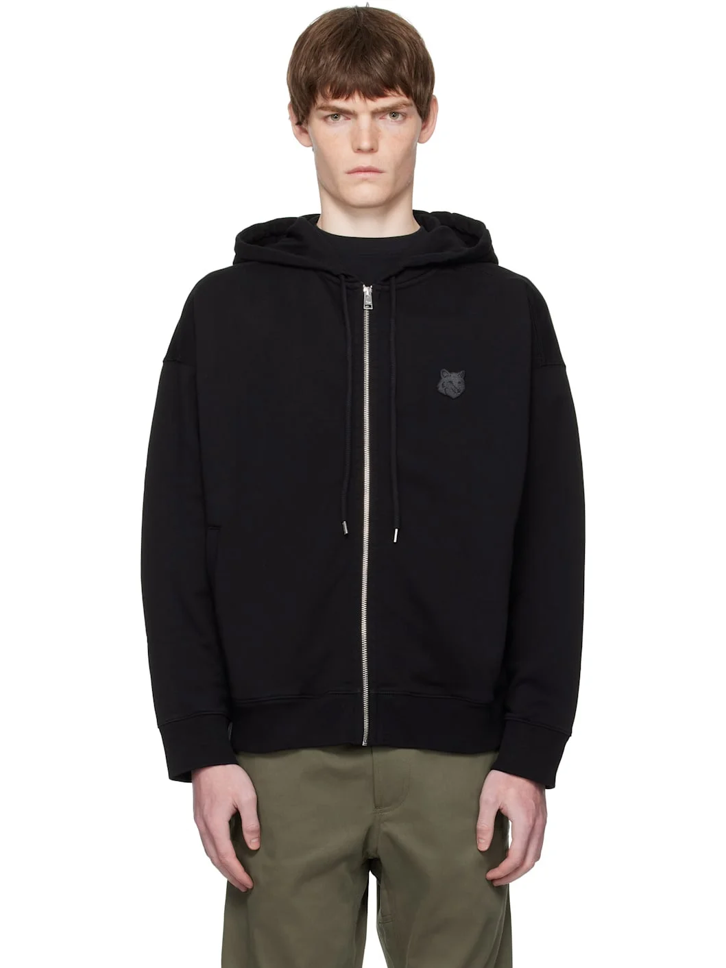 Black Bold Fox Head Patch Fullzip Oversize Hoodie