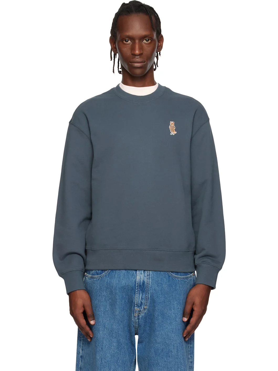 Organic cotton French terry sweatshirt. · Rib-knit crewneck, hem, and cuffs · Embroidered logo patch at chest Supplier color: Shadow blue 100% organic cotton. Made in Portugal 261389M204024