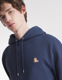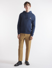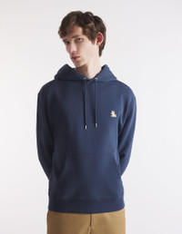 DETAILS Long sleeve fleece hoodie. Regular cut with Chillax Fox patch embroidered on the chest. - Fleece hoodie - Regular cut - Drawstring hood - Metal trim on drawstrings and eyelets - Long sleeves - Ribbing at the cuffs and waist - Embroidered Chillax Fox patch on the chest - Plain back LM00706KM0001-P494 SIZE & CUT Cut: REGULAR Sizing: MEN The male model is 6 and is wearing size M MATERIAL 100% COTTON TRACEABILITY Made in Portugal