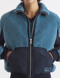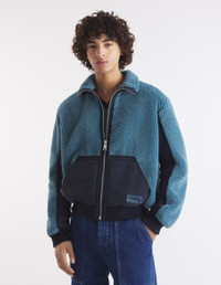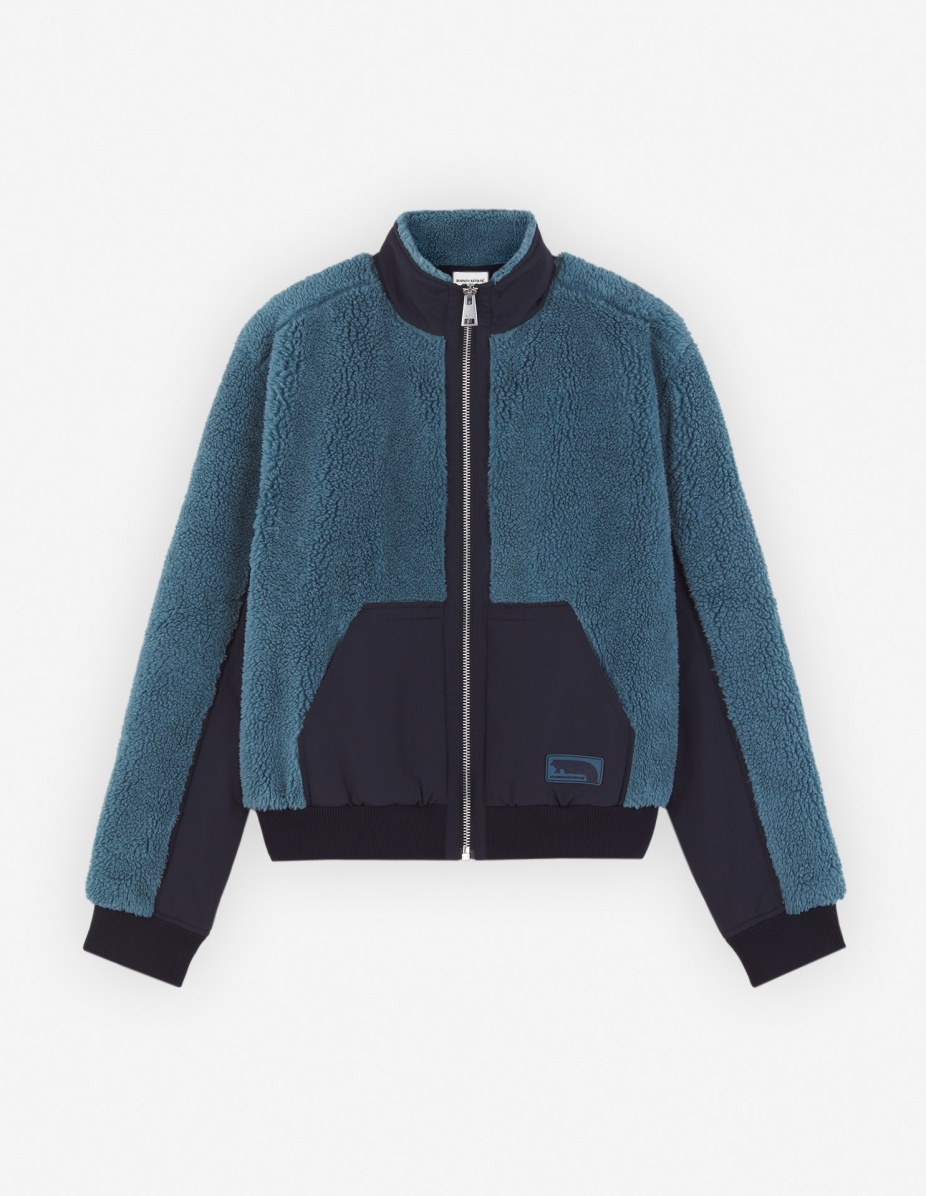DETAILS Fleece and Nylon jacket. Relaxed fit with silicon Flash Fox patch at the bottom. - Bi-material jacket in loopback fleece and nylon panels - Relaxed fit - High collar with Nylon cuff - Zipper closure with Profile Fox engraved slider - Bi-material long sleeves - Nylon kangaroo pocket - Silicon Flash Fox patch on the pocket - Ribbing at the cuffs and waist - Lined jacket NM02101WM2012-0021 SIZE & CUT Cut: RELAXED Sizing: MEN The male model is 6 and is wearing size M MATERIAL Main Material: 100% POLYESTER, Secondary material: 100% POLYAMIDE, Lining: 100% POLYESTER TRACEABILITY Made in China