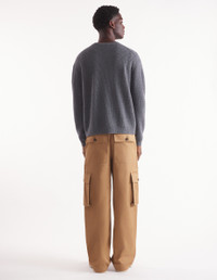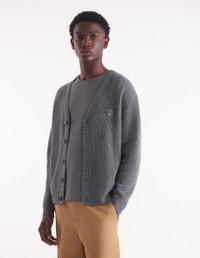 DETAILS Long sleeve merino wool-blend cardigan. Comfort fit with Bold Fox patch embroidered on the chest. - Ribbed merino wool-blend cardigan - Comfort fit - V-neck - Closure with engraved horn buttons - Long sleeves - Ribbing at the neckline, cuffs, and waist - Embroidered Bold Fox Head patch on the chest NM00501KT1093-H131 SIZE & CUT Cut: COMFORT Sizing: MEN MATERIAL 10% POLYAMIDE, 38% VISCOSE, 47% WOOL, 5% CASHMERE TRACEABILITY Made in China