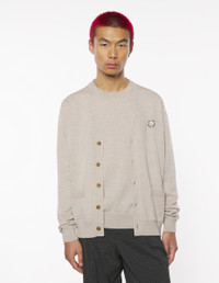 DETAILS Fine merino wool cardigan. Regular cut with embroidered Bold Fox Head patch. - Cardigan in plain fine merino wool - Regular cut - V-neck - Tone-on-tone Bold Fox Head patch embroidered on the chest - Button closure - Long sleeves - Two front patch pockets - Ribbing at the neckline, cuffs, and waistband MM00509KT1036-0134 SIZE & CUT Cut: REGULAR Sizing: MEN The male model is 9.5 and is wearing size M MATERIAL 100% MERINO WOOL TRACEABILITY Made in Morocco