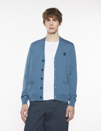 DETAILS Fine merino wool cardigan. Regular cut with embroidered Bold Fox Head patch on the chest. - Cardigan in plain fine merino wool - Regular cut - V-neck - Tone-on-tone Bold Fox Head patch embroidered on the chest - Button closure - Long sleeves - Two front patch pockets - Ribbing at the neckline, cuffs, and waistband MM00509KT1036-0075 SIZE & CUT Cut: REGULAR Sizing: MEN The male model is 11 and is wearing size M MATERIAL 100% MERINO WOOL TRACEABILITY Made in Morocco