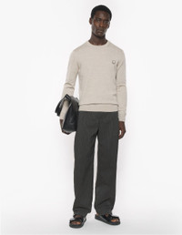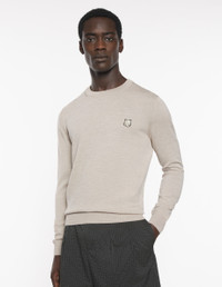 DETAILS Long sleeve fine merino wool jumper. Regular cut with embroidered Bold Fox Head patch. - Plain fine merino wool jumper - Regular cut - Crewneck - Tone-on-tone Bold Fox Head patch embroidered on the chest - Long sleeves - Ribbing at the neckline, cuffs, and waistband MM00815KT1036-0134 SIZE & CUT Cut: REGULAR Sizing: MEN The male model is 9.1 and is wearing size M MATERIAL 100% WOOL TRACEABILITY Made in Morocco
