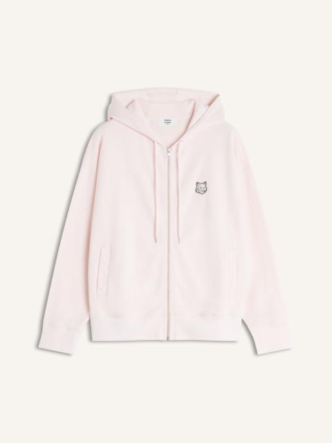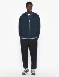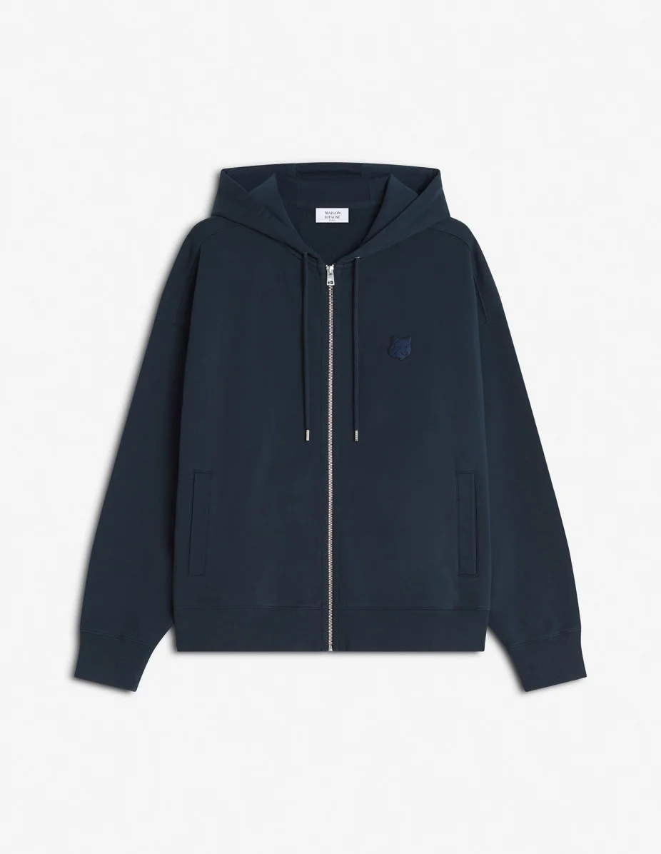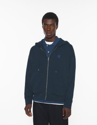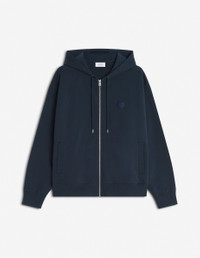 DETAILS Fleece zipped hoodie. Oversize fit with Tonal Fox Head embroidered patch. - Plain cotton fleece zipped hoodie - Organic cotton - Oversize fit - Hood with drawstring finished with metal cord tips - Zip fastening, Profile Fox engraved zip puller - Tonal Fox Head embroidered patch on the chest - Long sleeves - Two side pockets - Rib finishing at cuffs and hem PM02138KM0340-0413 SIZE & CUT Cut: OVERSIZE Sizing: MEN The male model is 6.1 and is wearing size M MATERIAL Main Material: 100% COTTON, RIB: 98% COTTON, 2% ELASTANE TRACEABILITY Made in Portugal