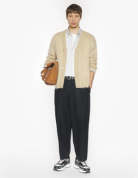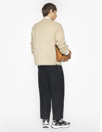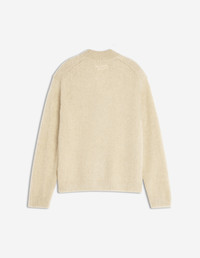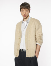DETAILS Cardigan in brushed wool and mohair. Comfort fit with embroidered Maison Kitsune Handwriting signature. - Wool and brushed mohair blend sweater for a soft handfeel - Comfort fit - Maison Kitsune engraved button closure - Long sleeves - Rib finishing at the neckline, cuffs and hem - Tonal Maison Kitsune Handwriting signature embroidered at the back PM00503KT1162-0335 SIZE & CUT Cut: COMFORT Sizing: MEN The male model is 6.1 and is wearing size M MATERIAL 21% POLYAMIDE, 30% MOHAIR WOOL, 49% WOOL TRACEABILITY Made in China