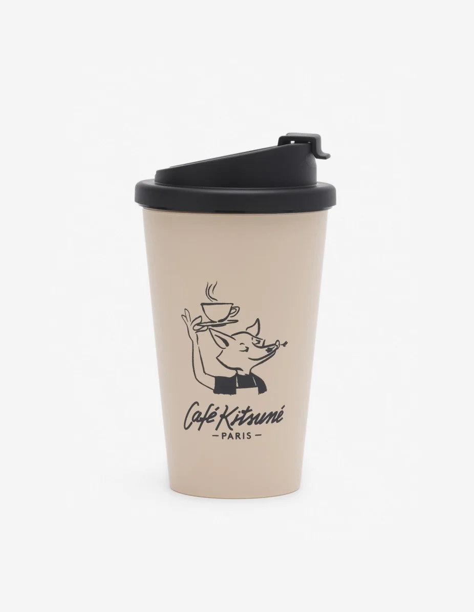 DETAILS Transportable tumbler with Barista Fox print. - Transportable tumbler - Contrasted removable protective lid - Spout - Contrasted Barista Fox print on the front - Capacity: 35 cL - Cafe Kitsune collection CKLU08102O0017-P709 SIZE & CUT Sizing: UNISEX MATERIAL Body: 100% POLYPROPYLENE, Lid: 80% POLYPROPYLENE, 20% THERMOPLASTIC ELASTOMER TRACEABILITY Made in Germany
