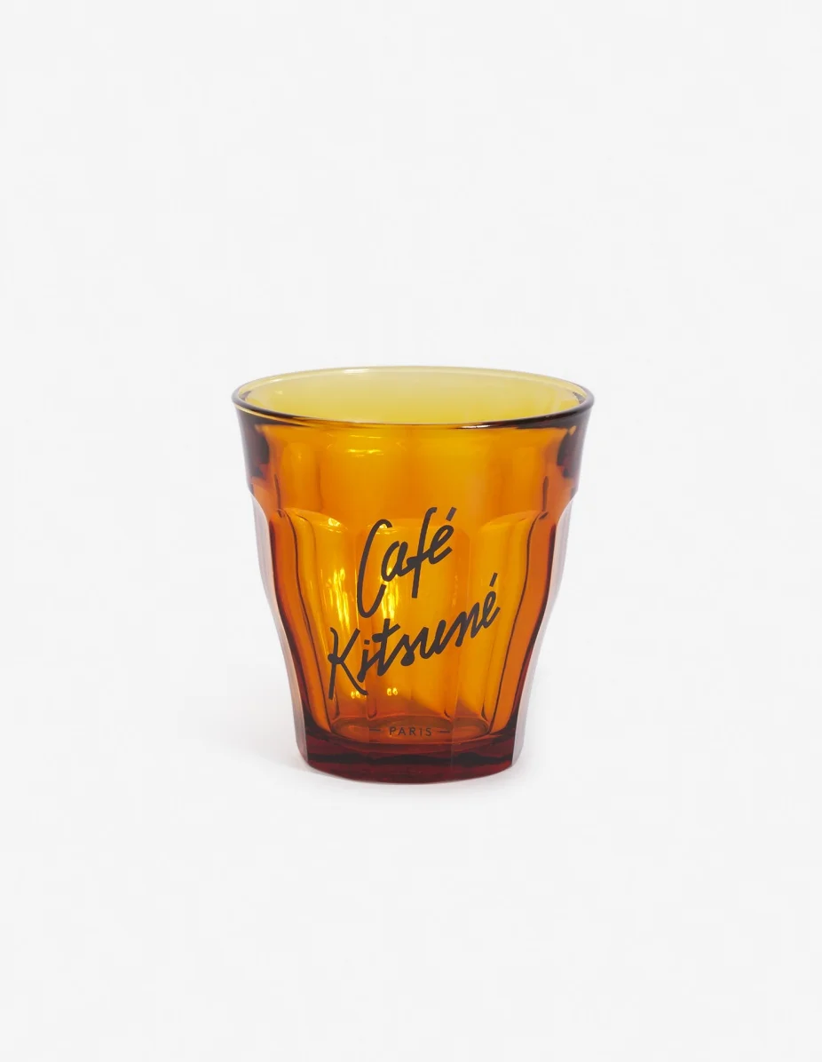 DETAILS Cafe Kitsune collection Duralex Picardie 25 cL glass. - Duralex Picardie clear colored glass - Cafe Kitsune Paris logo print on the front - Capacity: 25 cL - Cafe Kitsune collection OU08110O0011-0110 SIZE & CUT Sizing: UNISEX MATERIAL Main Material: 100% GLASS TRACEABILITY Made in France