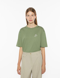 DETAILS Short-sleeved T-shirt in cotton jersey. Relaxed fit with embroidered Cafe Kitsune Handwriting signature. - Soft cotton jersey T-shirt - Relaxed fit - Short sleeves - Crew neck with rib finishing - Cafe Kitsune Handwriting signature embroidered on the chest PU00105KJ7014-0079 SIZE & CUT Cut: RELAX Sizing: UNISEX MATERIAL 100% COTTON TRACEABILITY Made in Portugal