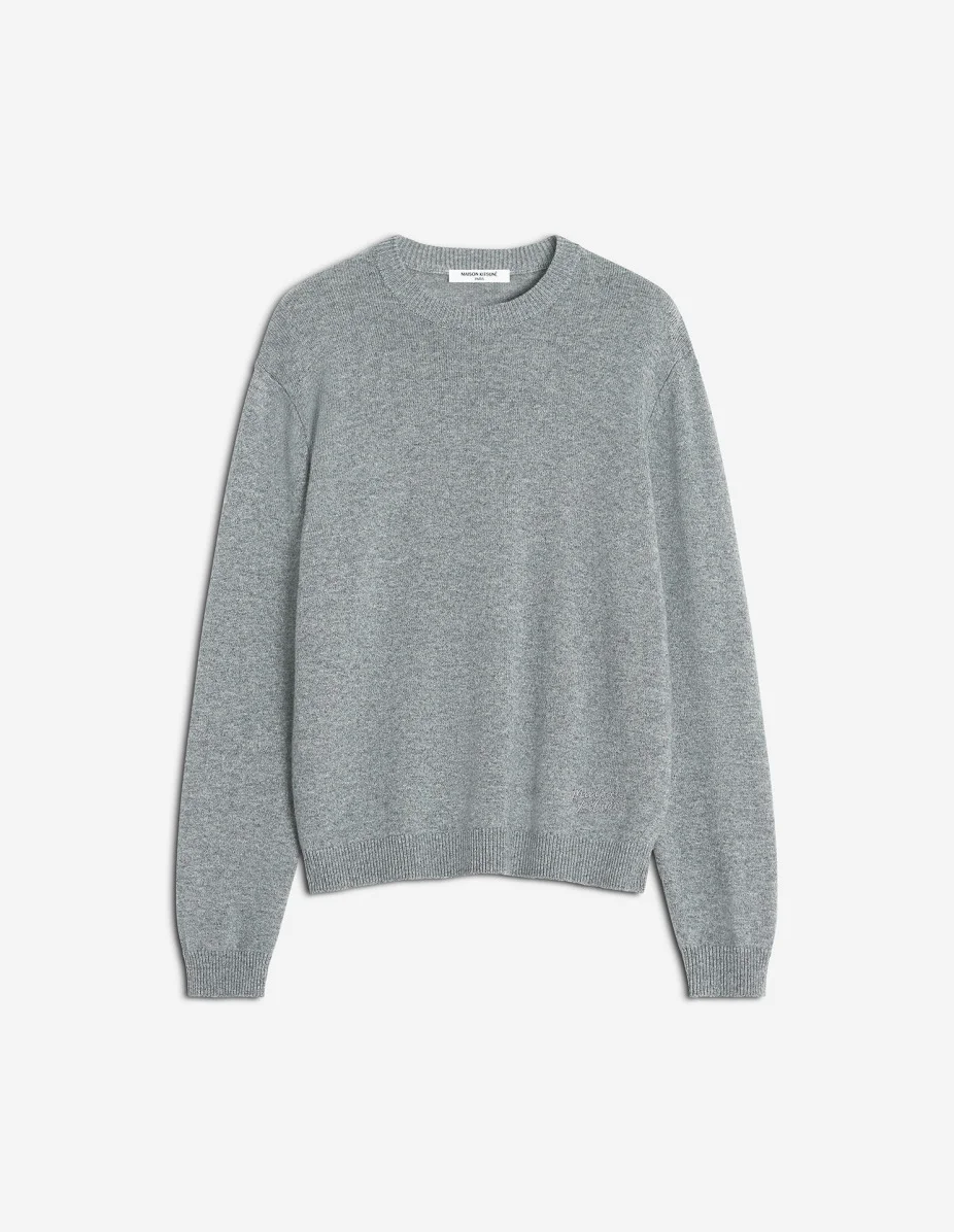DETAILS Cashmere blend jumper. Regular fit, Maison Kitsune Handwriting signature. - Wool and cashmere jumper - Regular fit - Crew neck - Long sleeves - Rib finishing at the neckline, cuffs and bottom - Fine knit - Tonal Maison Kitsune Handwriting signature embroidered at the bottom left PM00815KT1112-H131 SIZE & CUT Cut: REGULAR Sizing: MEN The male model is 6.1 and is wearing size M MATERIAL 70% WOOL, 30% CASHMERE TRACEABILITY Made in China
