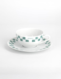 CHECKERBOARD PORCELAIN CUP AND SAUCER