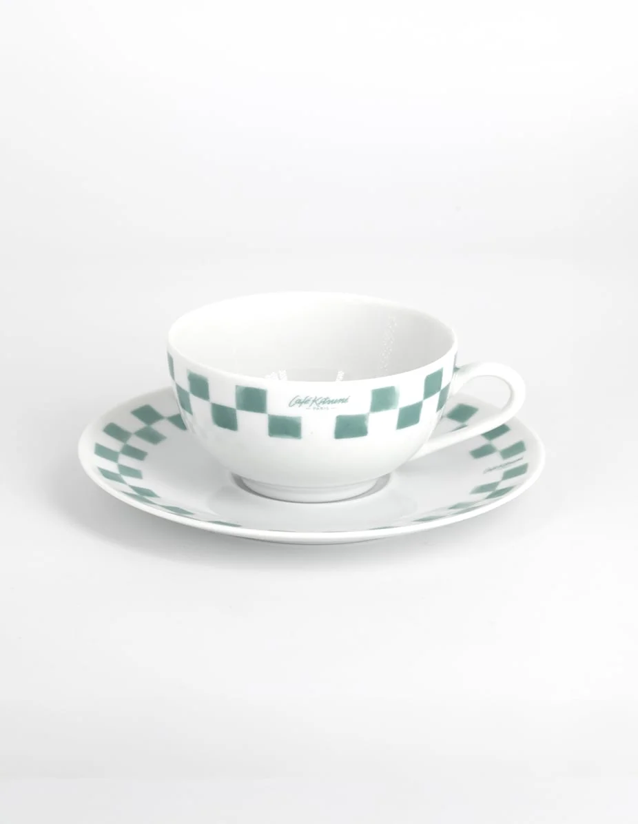 DETAILS Porcelain cup and saucer with hand-painted checkered pattern. Cafe Kitsune Collection. - Porcelain cup and saucer - Delicately hand-painted checkered pattern - Made in France - Cafe Kitsune Collection - Dish washer safe PU08111O0010-0386 SIZE & CUT Sizing: UNISEX MATERIAL Main Material: 100% PORCELAIN TRACEABILITY Made in France