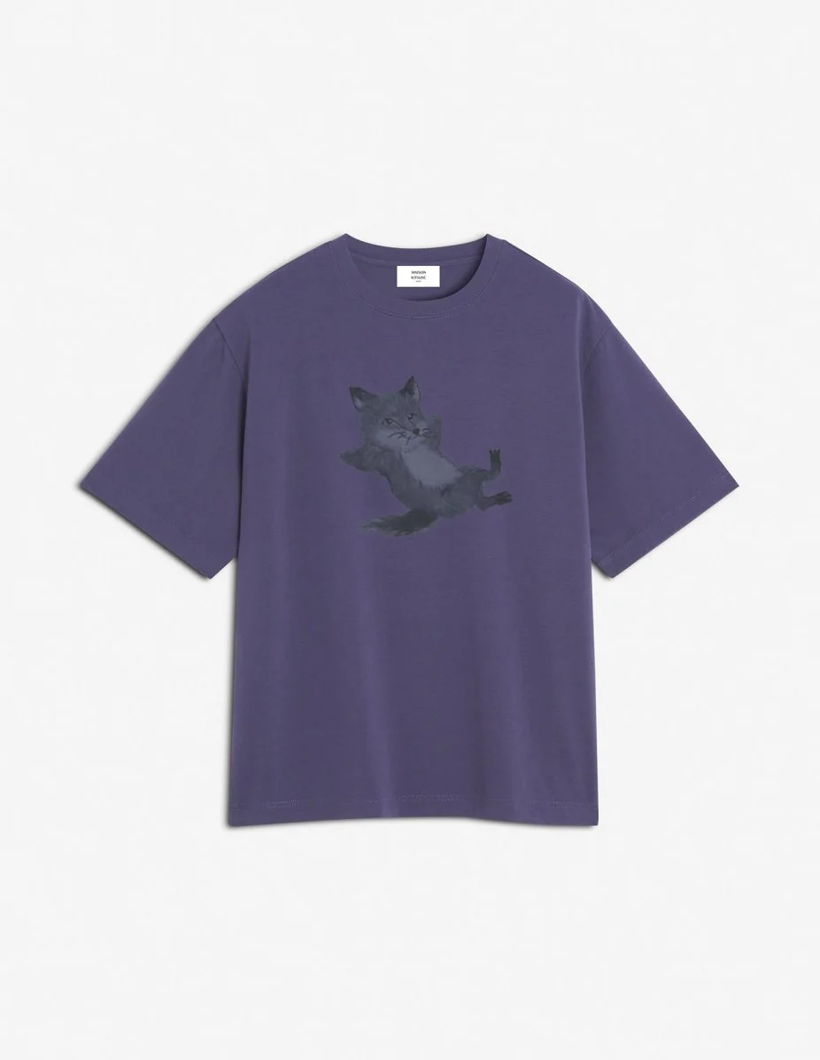 DETAILS Short sleeve cotton tee-shirt. Oversized cut with tone-on-tone Chillax Fox print. - Cotton tee-shirt - Oversized cut - Rib-knit trim crewneck - Tone-on-tone Chillax Fox print on the front - Short sleeves OM00108KJ0008-0120 SIZE & CUT Cut: OVERSIZE Sizing: MEN The male model is 11 and is wearing size M MATERIAL 100% COTTON TRACEABILITY Made in Portugal