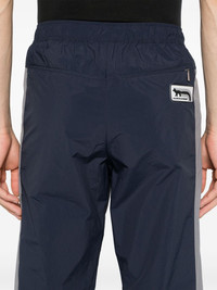 colour-block track pants Highlights - Navy blue/medium grey - Crinkled finish - Water-repellent - Colour-block panelled design - Logo patch to the rear - Elasticated waistband - Front press-stud and zip fastening - Two side inset pockets - Rear zip-fastening pocket - Tapered leg with elasticated ankles Imported Composition Polyamide 100% SIZE & FIT Model measurements Height 6 ft 1 in(1.85 m) Bust/Chest 35.82 in(91 cm) Hips 37.79 in(96 cm) Waist 29.13 in(74 cm) FittingInformation Designed for a relaxed tapered leg, allowing a comfortable loose fit above the knee with a closer fit towards the calves The elasticated waist allows for a comfortable fit Made from a midweight non-stretch fabric This piece fits true to size – take your usual size