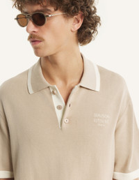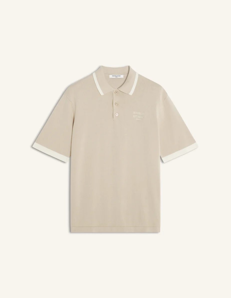 DETAILS Knitted polo in soft cotton. Comfort fit with Maison Kitsune Paris embroidered on the chest. - Soft cotton knitted polo - Comfort fit - Polo collar with button placket - Maison Kitsune engraved buttons - Maison Kitsune Paris embroidery on the chest - Contrasted ribbing at the neckline and armholes QM00208KT1135-0429 SIZE & CUT Cut: COMFORT Sizing: MEN The male model is 6 tall and wears a size S MATERIAL 100% COTTON TRACEABILITY Made in Bulgaria