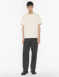 DETAILS Short sleeve cotton tee-shirt. Comfort cut with Profile Fox patch appliqueee. - Plain cotton tee-shirt - Comfort cut - Rib-knit trim crewneck - Profile Fox patch appliqueee on the front, raw edge finish - Short sleeves OM00121KJ0118-P205 SIZE & CUT Cut: COMFORT Sizing: MEN The male model is 11 and is wearing size M MATERIAL 100% COTTON TRACEABILITY Made in Portugal