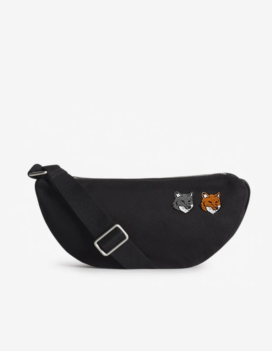 DETAILS Cotton twill bumbag with embroidered Double Bold Fox Head patches. - Cotton twill bumbag - Waist and crossbody wear - Adjustable strap with buckles - Embroidered Double Bold Fox Head patches on the front - Zipper closure with engraved Profile Fox slider - Embroidered Maison Kitsune Handwriting signature at the back - Interior patch pocket with woven label with Maison Kitsune logo - Twill lining OM511CFWW0096-P190 SIZE & CUT Sizing: UNISEX MATERIAL 100% COTTON TRACEABILITY Made in China