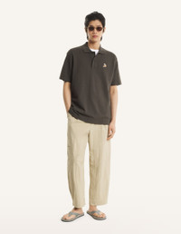 DETAILS Short sleeve polo in soft cotton pique. Comfort fit with Dreaming Fox embroidered patch on the chest. - Dreaming Fox short sleeve polo in soft cotton pique - Comfort fit - Polo collar with button placket - Maison Kitsune engraved buttons - Dreaming Fox embroidered patch on the chest QM00201KP0001-0453 SIZE & CUT Cut: COMFORT Sizing: MEN The male model is 6 tall and wears a size S MATERIAL 100% ORGANIC COTTON TRACEABILITY Made in Portugal