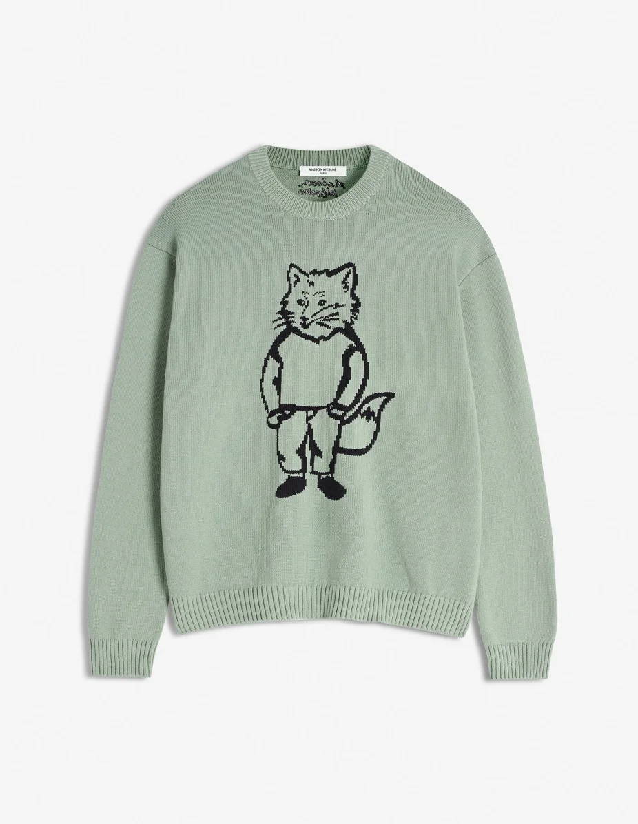 DETAILS Long sleeve knit jumper. Comfort cut with Easy Fox and Maison Kitsune Handwriting signature in intarsia. - Knit jumper - Comfort cut - Crewneck - Easy Fox in intarsia on the front - Long sleeves - Maison Kitsune Handwriting signature in intarsia on the back - Ribbing at the neckline, cuffs, and waist OM00802KT1030-0078 SIZE & CUT Cut: COMFORT Sizing: MEN The male model is 8'1 and is wearing size M MATERIAL 70% COTTON, 30% POLYAMIDE TRACEABILITY Made in China