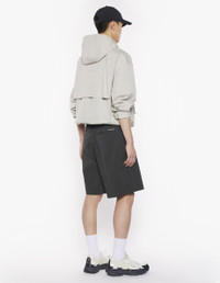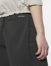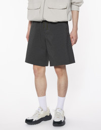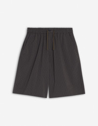 DETAILS Striped seersucker Bermuda shorts. Relaxed cut with Maison Kitsune Handwriting signature woven label . - Bermuda shorts in striped seersucker - Relaxed cut - Elasticated drawstring waist - Button closure with hidden zipper - Two side slash pockets - Two back welt pockets - Maison Kitsune Handwriting signature woven label at the back OM01406WC5032-P391 SIZE & CUT Cut: RELAXED Sizing: MEN The male model is 8'1 and is wearing size M MATERIAL Main Material: 26% COTTON, 74% POLYESTER, Pocket lining: 100% COTTON TRACEABILITY Made in Romania