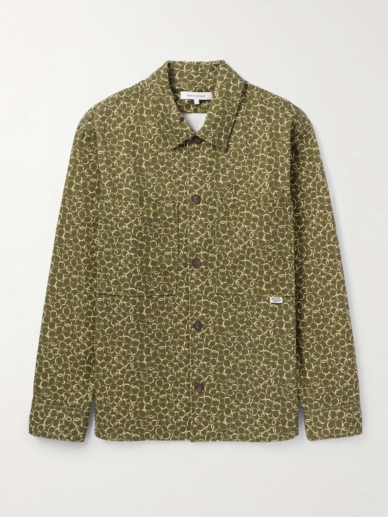 Maison Kitsuné's overshirt is bold and playful. Made from cotton-drill, it's printed with a pattern that resembles camo from afar but if you look closely, you'll see is made up of repeated florals. We also have the coordinating shorts in our edit. Size & Fit - Fits true to size. Take your normal size - Designed for a boxy fit - Mid-weight, non-stretchy fabric - Model is shown wearing a M - Model measures: chest 38"/ 96cm, height 6'2"/ 188cm Details & Care - Tonal-green cotton-drill - Button fastenings - 100% cotton - Dry clean