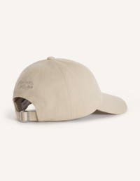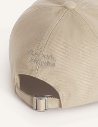 DETAILS Cap in cotton twill with Fox Head embroidered patch on the front. - Cotton twill baseball cap - Six-panel construction - Curved visor - Tonal Fox Head embroidered patch on the front - Adjustable metal buckle at the back engraved with Maison Kitsune and Profile Fox MM06104WW0096-0450 SIZE & CUT Sizing: UNISEX MATERIAL 100% COTTON TRACEABILITY Made in China