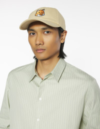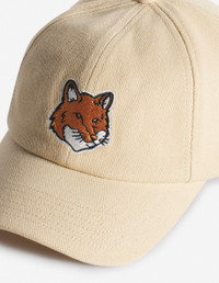 DETAILS Six-panel cotton twill baseball cap featuring Fox Head embroidery and Maison Kitsune Handwriting signature. - Cotton twill cap - Six-panel cap - Curved brim - Fox Head embroidered at front - Adjustable metal buckle at the back with Maison Kitsune and Profile fox engravings - Maison Kitsune Handwriting signature embroidered at the back PM06100WW0096-0335 SIZE & CUT Sizing: UNISEX MATERIAL 100% COTTON TRACEABILITY Made in China