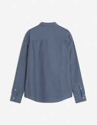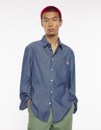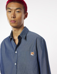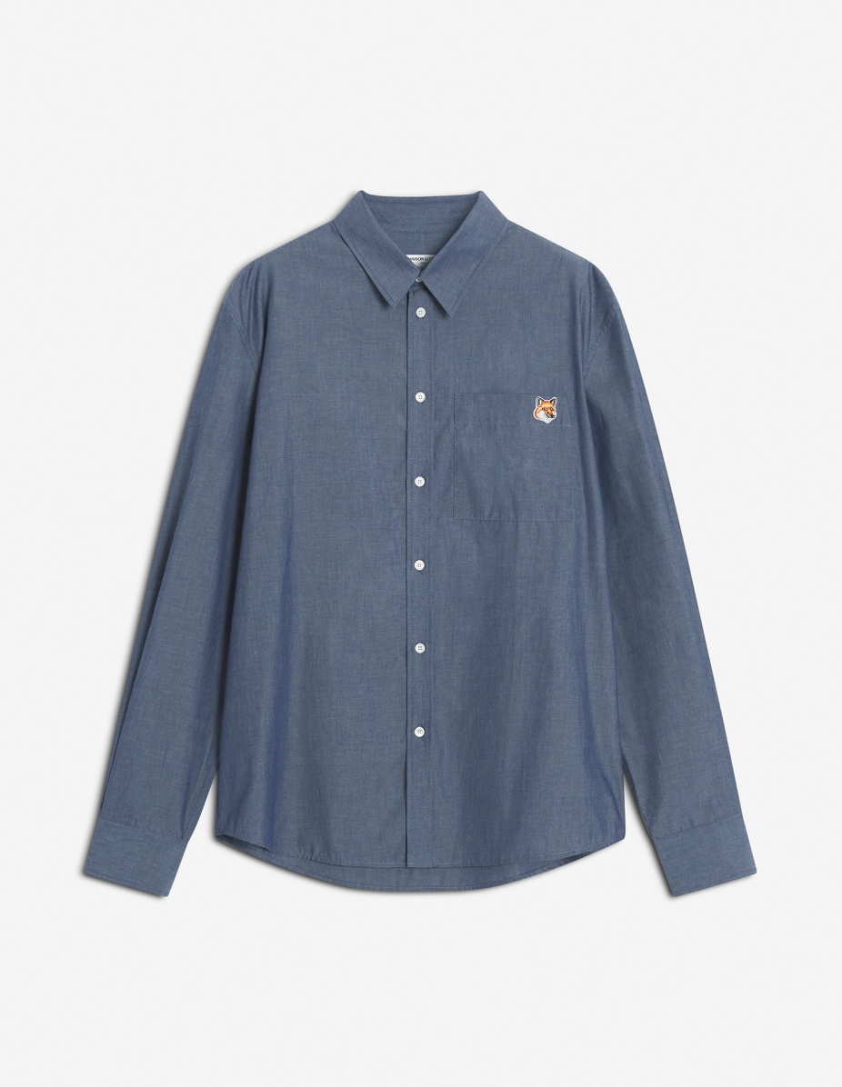 DETAILS Casual shirt in light chambray. Straight cut with embroidered Fox Head patch. - Light chambray casual shirt - Straight cut - Shirt collar - Engraved button closure - Patch chest pocket - Embroidered Fox Head patch on the pocket - Long sleeves finished off with straight button cuffs - Rounded hem - Plain back OM00432WC5043-P470 SIZE & CUT Cut: STRAIGHT Sizing: MEN MATERIAL 100% COTTON TRACEABILITY Made in Portugal