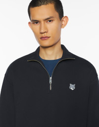 DETAILS Half zip fleece sweatshirt. Comfort fit, Grey Fox Head embroidered patch. - Half zip fleece sweatshirt - Organic cotton - Comfort fit - Half-zip collar - Rib finishing at the collar, cuffs and hem - Grey Fox Head embroidered patch on the chest PM00305KM0341-P199 SIZE & CUT Cut: COMFORT Sizing: MEN The male model is 6.2 and is wearing size M MATERIAL Main Material: 100% COTTON, RIB: 98% COTTON, 2% ELASTANE TRACEABILITY Made in Portugal