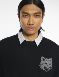 DETAILS Merino wool jumper with long sleeves. Comfort fit, Fox Head intarsia. - Fine merino wool jumper - Comfort fit - Crew neck - Long sleeves - Rib finishing at the neckline, cuffs and hem - Fox Head intarsia on the front PM00816KM0329-0391 SIZE & CUT Cut: COMFORT Sizing: MEN The male model is 6.1 and is wearing size M MATERIAL 100% WOOL TRACEABILITY Made in China