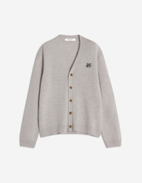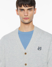 DETAILS Lambswool cardigan. Comfort fit with embroidered Grey Fox Head patch. - Plain lambswool cardigan - Comfort fit - V neck - Long sleeves - Engraved button closure - Rib finishing at the neckline, cuffs and waist - Soft & hypoallergenic knit - Grey Fox Head embroidered patch on the chest PM00502KT1006-H120 SIZE & CUT Cut: COMFORT Sizing: MEN The male model is 6.1 and is wearing size M MATERIAL 100% WOOL TRACEABILITY Made in Morocco