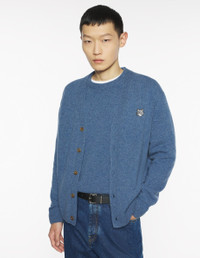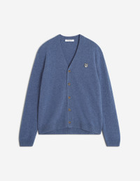DETAILS Lambswool cardigan. Comfort fit with embroidered Grey Fox Head patch. - Plain lambswool cardigan - Comfort fit - V neck - Long sleeves - Engraved button closure - Rib finishing at the neckline, cuffs and waist - Soft & hypoallergenic knit - Grey Fox Head embroidered patch on the chest PM00502KT1006-0331 SIZE & CUT Cut: COMFORT Sizing: MEN The male model is 6.1 and is wearing size M MATERIAL 100% WOOL TRACEABILITY Made in Morocco
