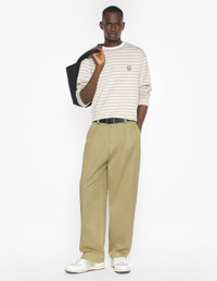 DETAILS Striped mercerized cotton long-sleeve T-shirt. Comfort fit with Fox Head embroidered patch. - Mercerized cotton mariniere T-shirt - Comfort fit - Long sleeves - Crew neck with rib finishing - Tonal Fox Head embroidered patch on the chest PM00122KJ0044-0393 SIZE & CUT Cut: COMFORT Sizing: MEN The male model is 6.1 and is wearing size M MATERIAL 100% COTTON TRACEABILITY Made in Portugal