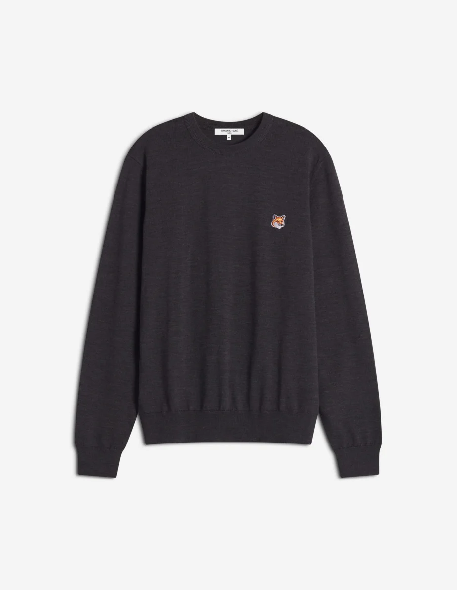 DETAILS Extra-fine merino wool jumper, regular fit, Fox Head embroidered patch. - Extra-fine merino wool jumper - Regular fit - Crew neck - Long sleeves - Rib finishing at the neckline, cuffs and hem - Fine-gauge knit - Embroidered Fox Head patch on the chest PM00822KT1036-H190 SIZE & CUT Cut: REGULAR Sizing: MEN MATERIAL 100% WOOL TRACEABILITY Made in Morocco