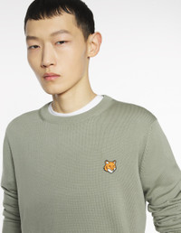 DETAILS Extra-fine merino wool jumper with long sleeves, regular fit, Fox Head embroidered patch. - Extra-fine merino wool sweater - Regular fit - Crew neck - Long sleeves - Rib finishing at the neckline, cuffs and hem - Fine-gauge knit - Fox Head embroidered patch on the chest PM00801KT1181-P131 SIZE & CUT Cut: REGULAR Sizing: MEN The male model is 6.1 and is wearing size M MATERIAL 100% MERINOS EXTRAFINE WOOL TRACEABILITY Made in Morocco