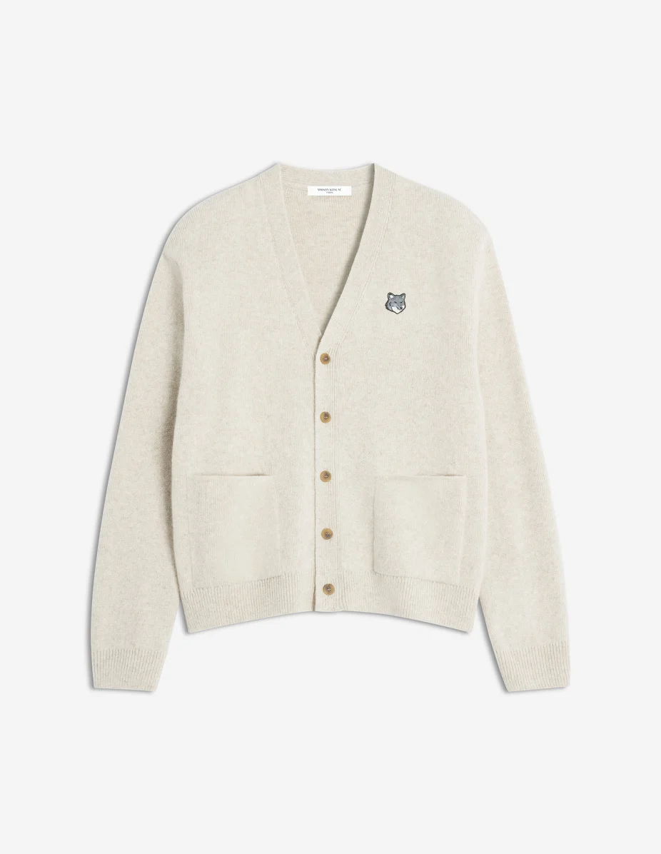 DETAILS Milano lambswool cardigan. Comfort fit with Grey Fox Head embroidered patch. - Milano lambswool cardigan, very resistant and soft handfeel - Comfort fit - Maison Kitsune egraved button closure - Long sleeves - Rib finishing at the neckline, cuffs and hem - Grey Fox Head embroidered patch on the chest PM00510KT1180-0335 SIZE & CUT Cut: COMFORT Sizing: MEN The male model is 6.1 and is wearing size M MATERIAL 100% WOOL TRACEABILITY Made in Bulgaria