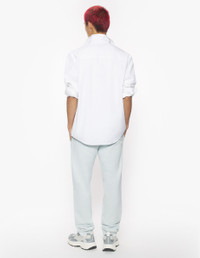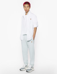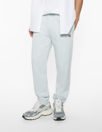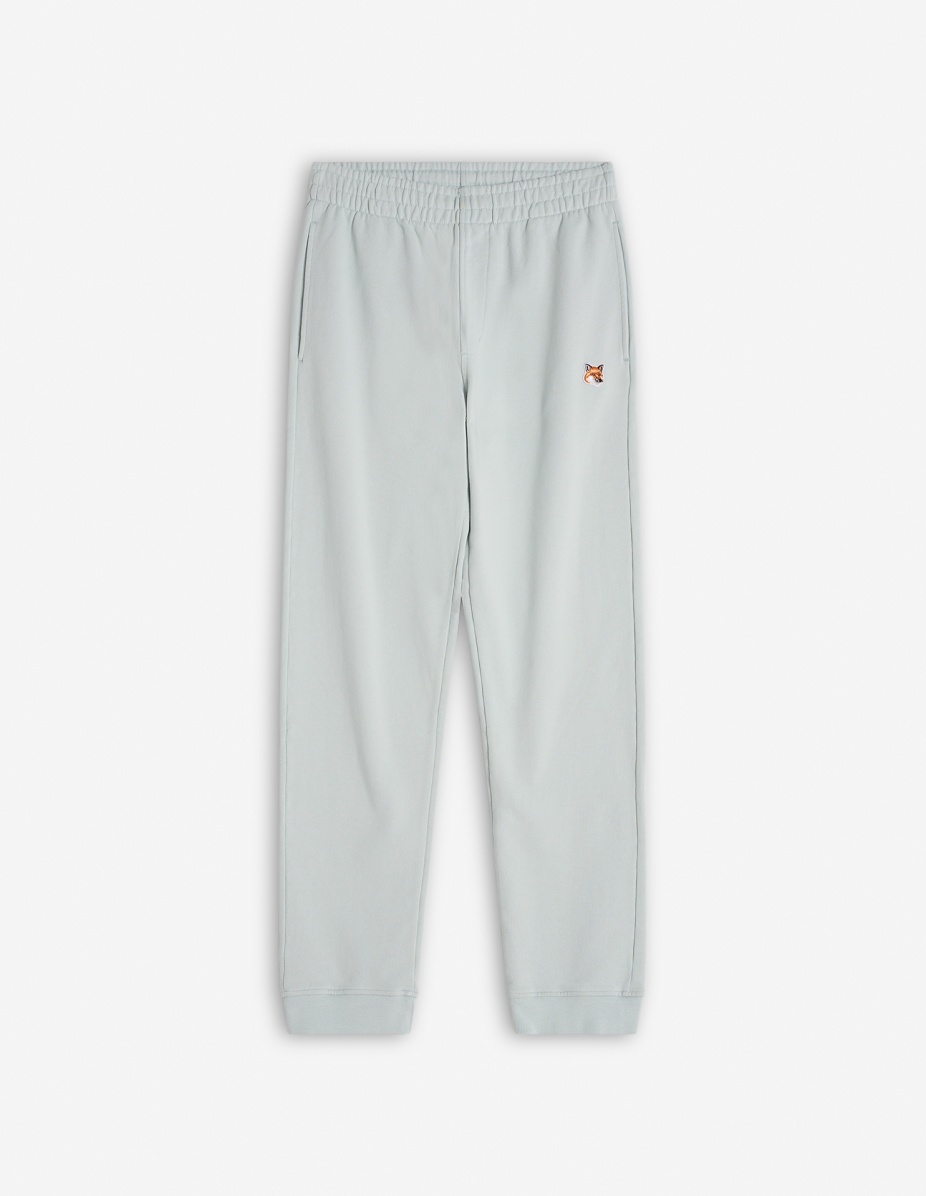 DETAILS Fleece joggers. Regular cut with embroidered Fox Head patch. - Plain fleece joggers - Regular cut - Elasticated waistband with interior drawstring - Two slash side pockets - Embroidered Fox Head patch at the front - Patch pocket at the back - Tapered ankle with ribbed trim LM01114KM0001-0072 SIZE & CUT Cut: REGULAR Sizing: MEN The male model is 9.5 and is wearing size M MATERIAL 100% COTTON TRACEABILITY Made in Portugal