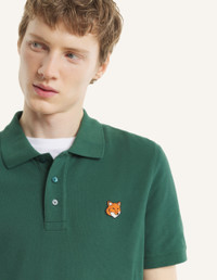 DETAILS Short sleeve polo in cotton pique. Regular fit with Fox Head embroidered patch on the chest. - Fox Head short sleeve polo in cotton pique - Regular fit - Polo collar with button placket - Maison Kitsune engraved buttons - Natural Fox Head embroidered patch on the chest PM00209KP0002-P399 SIZE & CUT Cut: REGULAR Sizing: MEN The male model is 6.1 tall and wears a size S MATERIAL 100% COTTON TRACEABILITY Made in Portugal