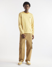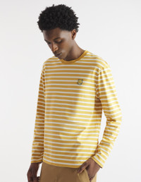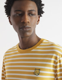 DETAILS Striped mercerized cotton t-shirt. Regular fit with long sleeves and Bld Fox Head patch embroidered on the chest. - Striped mercerized cotton t-shirt - Regular fit - Rib-knit trim crewneck - Long sleeves - Reinforced seams at the sleeves and waist - Embroidered Bold Fox Head patch on the chest NM00106KJ0044-B762 SIZE & CUT Cut: REGULAR Sizing: MEN The male model is 6.1 and is wearing size M MATERIAL 100% COTTON TRACEABILITY Made in Portugal