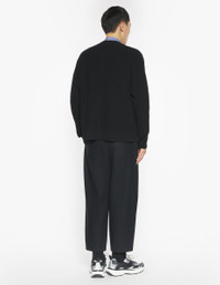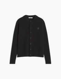 DETAILS Ribbed wool cardigan. Regular fit with Fox Head embroidered patch. - Ribbed wool cardigan - Regular fit - Crew neck - Maison Kitsune engraved button closure - Long sleeves - Rib finishing at the neckline, cuffs and hem - Ribbed knit - Tonal Fox Head embroidered patch on the chest PM00508KT1149-P199 SIZE & CUT Cut: REGULAR Sizing: MEN The male model is 6.1 and is wearing size M MATERIAL 100% WOOL TRACEABILITY Made in Italy