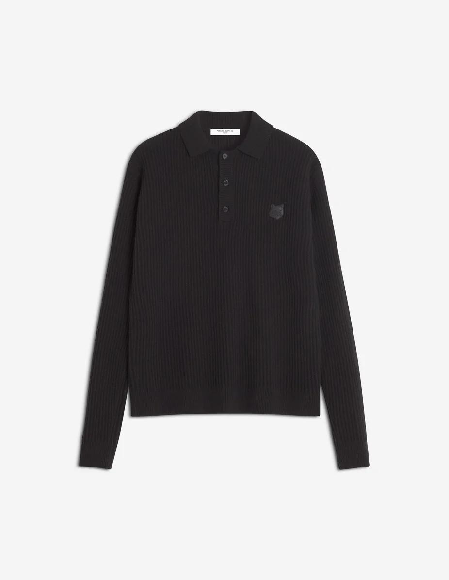 FOX HEAD WOOL RIBBED POLO JUMPER