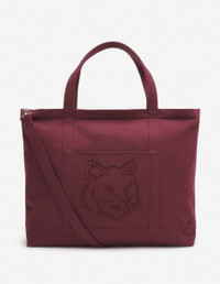 DETAILS XL “Fox Head” tote bag in thick coated canvas. - XL tote bag in plain thick coated canvas - Handheld, shoulder, and crossbody wear - Removable strap with engraved carabiner clasp and adjustable with buckle - Patch front pocket - Tonal embroidered "Maison Kitsune Handwriting" signature at the back - Zipped closure with engraved Profile Fox slider - Interior patch pocket - Woven label with contrast “Maison Kitsune” logo on the pocket - Twill lining - Dimensions: 60x43,5x22 cm LW05105WW0107-P677 SIZE & CUT Sizing: WOMEN MATERIAL Exterior: 100% COTTON, Interior: 100% COTTON TRACEABILITY Made in China