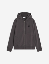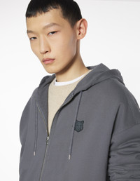 DETAILS Fleece zipped hoodie. Oversize fit with Tonal Fox Head embroidered patch. - Plain cotton fleece zipped hoodie - Organic cotton - Oversize fit - Hood with drawstring finished with metal cord tips - Zip fastening, Profile Fox engraved zip puller - Tonal Fox Head embroidered patch on the chest - Long sleeves - Two side pockets - Rib finishing at cuffs and hem PM02138KM0340-P180 SIZE & CUT Cut: OVERSIZE Sizing: MEN The male model is 6.1 and is wearing size M MATERIAL Main Material: 100% COTTON, RIB: 98% COTTON, 2% ELASTANE TRACEABILITY Made in Portugal