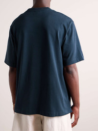 Each of Maison Kitsuné's collections are imbued with an efforlessly cool Parisian feel. Easy to style with loungewear or tailoring, this T-shirt is made from cotton-jersey and embroidered with the label's streamlined 'Go Faster' logo. Wide, boxy sleeves complement the loose fit. Size & Fit - Model wears a size larger to achieve a looser fit - Mid-weight, stretchy fabric - Model is shown wearing a M - Model measures: chest 36"/ 92cm, height 6'1"/ 185cm Details & Care - Navy cotton-jersey - 100% cotton - Machine wash