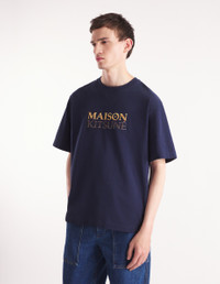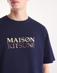 DETAILS Short sleeve cotton t-shirt. Oversized fit with “Maison Kitsune” embroidery in color gradient at the front. - Plain cotton t-shirt - Oversized fit - Rib-knit trim crewneck - Short sleeves - Reinforced seams at the sleeves and waist - Embroidered “Maison Kitsune” in color gradient at the front NM00116KJ0119-P480 SIZE & CUT Cut: REGULAR Sizing: MEN The male model is 6.1 and is wearing size M MATERIAL 100% COTTON TRACEABILITY Made in Portugal
