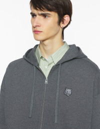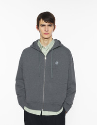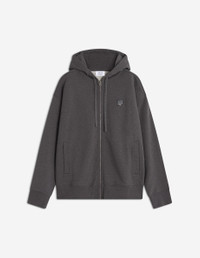 DETAILS Fleece zipped hoodie. Oversize fit with Tonal Fox Head embroidered patch. - Plain cotton fleece zipped hoodie - Organic cotton - Oversize fit - Hood with drawstring finished with metal cord tips - Zip fastening, Profile Fox engraved zip puller - Tonal Fox Head embroidered patch on the chest - Long sleeves - Two side pockets - Rib finishing at cuffs and hem PM02138KM0340-H170 SIZE & CUT Cut: OVERSIZE Sizing: MEN The male model is 6.1 and is wearing size M MATERIAL Main Material: 100% COTTON, RIB: 98% COTTON, 2% ELASTANE TRACEABILITY Made in Portugal