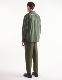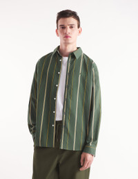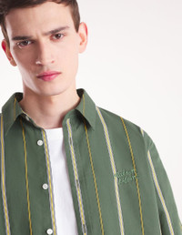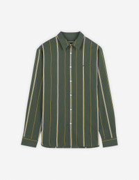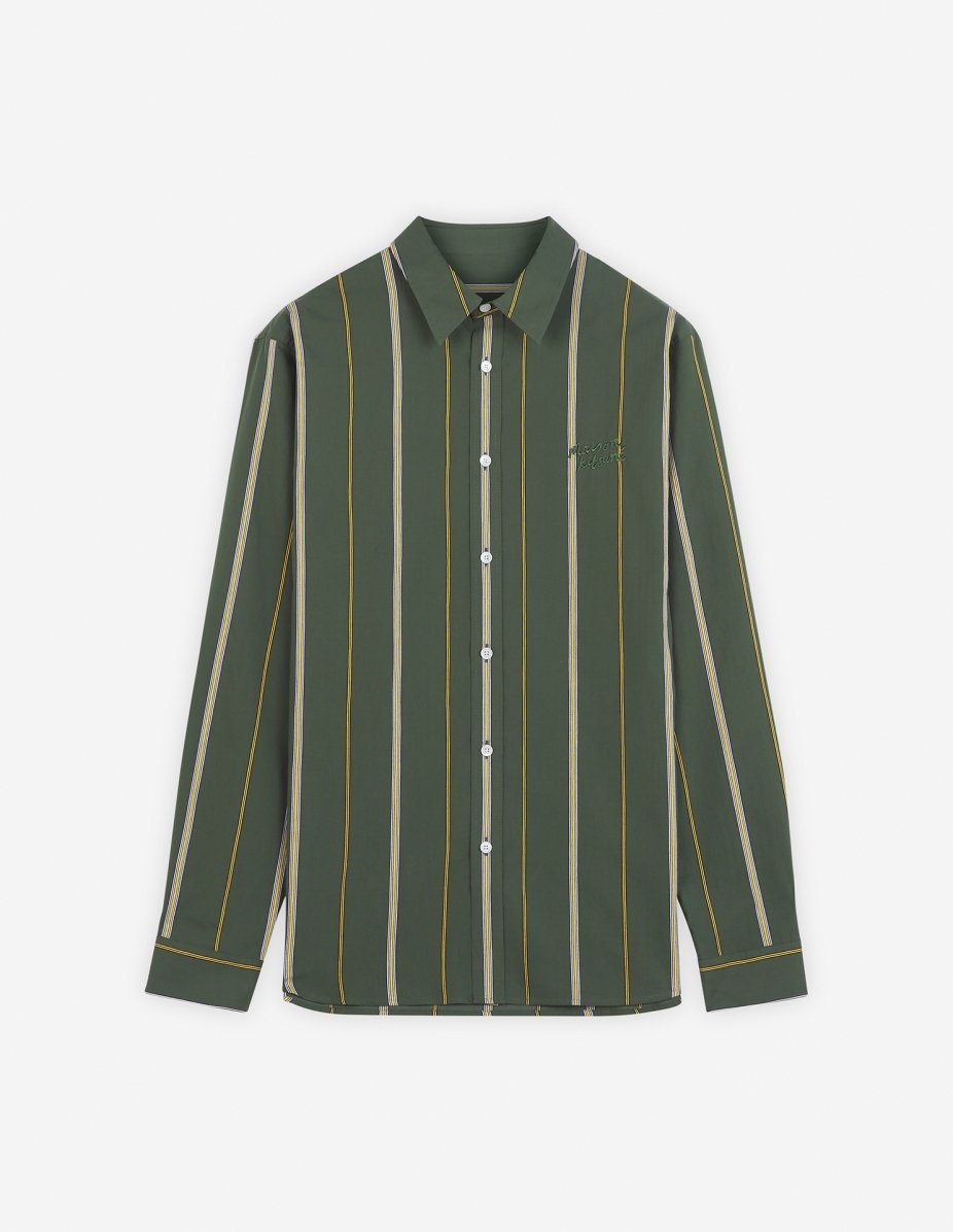 DETAILS Heritage striped poplin shirt. Relaxed fit with "Maison Kitsune Handwriting" signature embroidered on the chest. - Heritage striped poplin shirt - Relaxed fit - Shirt collar - Button closure - Long sleeves finished off with button straight cuffs - Tonal embroidered "Maison Kitsune Handwriting" signature on the chest - Rounded hem MM00416WC5029-P391 SIZE & CUT Cut: RELAXED Sizing: MEN The male model is 6.1 and is wearing size M MATERIAL 85% COTTON, 15% POLYAMIDE TRACEABILITY Made in Lithuania